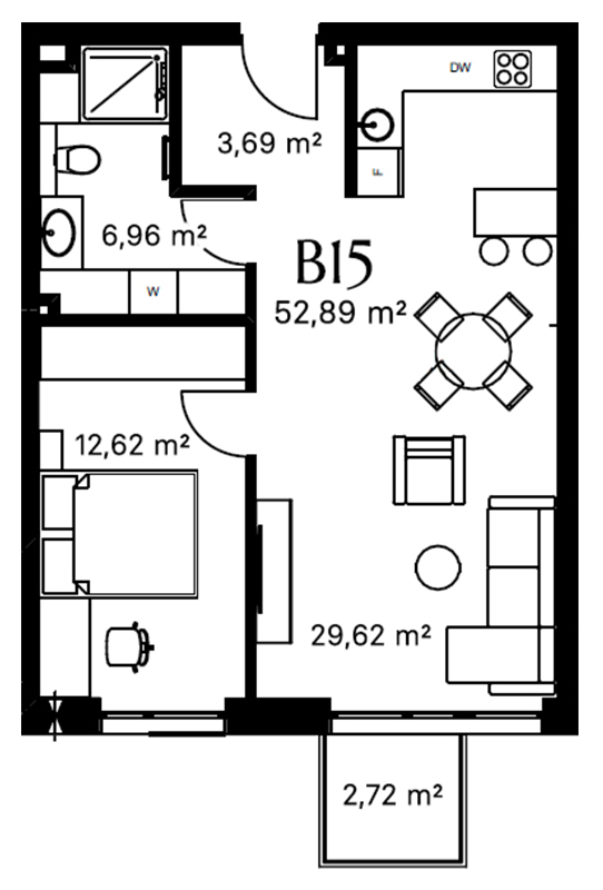 Plotas: 52,89 m²