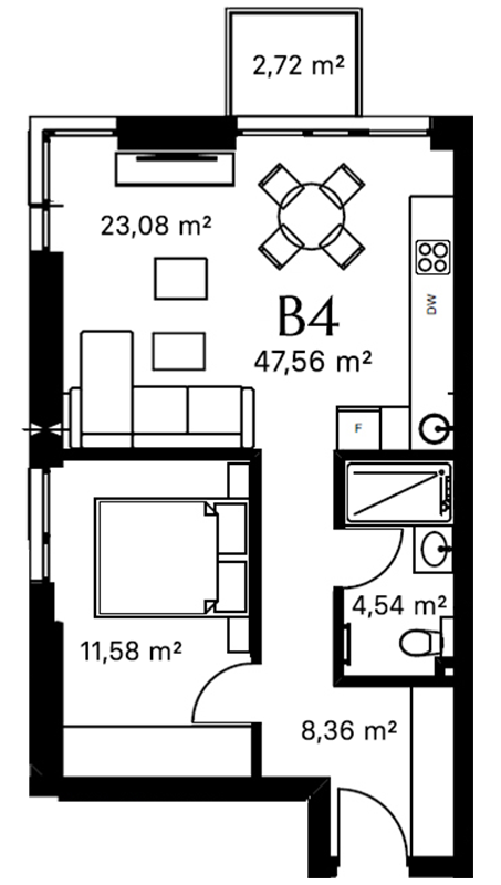 Plotas: 47,56 m²